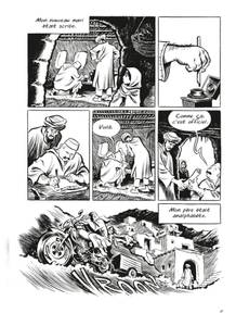 Véritable claque graphique avec des planches toutes plus belles et travaillées les unes que les autres, Habibi nous invite à suivre les destins de Dodola et Zam, deux orphelins qui arrivent à échapper à l’esclavage mais se retrouvent à vivre dans un bateau à l’abandon, échoué au beau milieu d’un désert de sable.