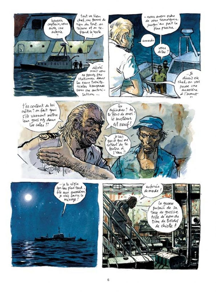 Alors on l’accompagne dans ses errances. On y croise de nombreux personnages truculents. Mention spéciale pour Günter, un capitaine hollandais bloqué à quai pour avoir mouillé dans des affaires louches et dont on se délecte du langage sans filtre ! Mais la galerie de portrait est large entre les prostituées et leurs clients naïfs, les touristes un brin déconnectés des réalités locales mais qui offrent toujours de bonnes occasions de se faire quelques sous, ou encore les trafiquants et les djihadistes qui œuvrent en sous-marin…